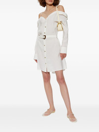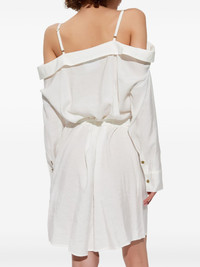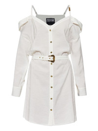 off-shoulder dress Highlights - White - Front button fastening - Adjustable shoulder straps - Detachable and adjustable waist belt - Buttoned cuffs Made in Italy Composition Modal 82%, Polyester 18%