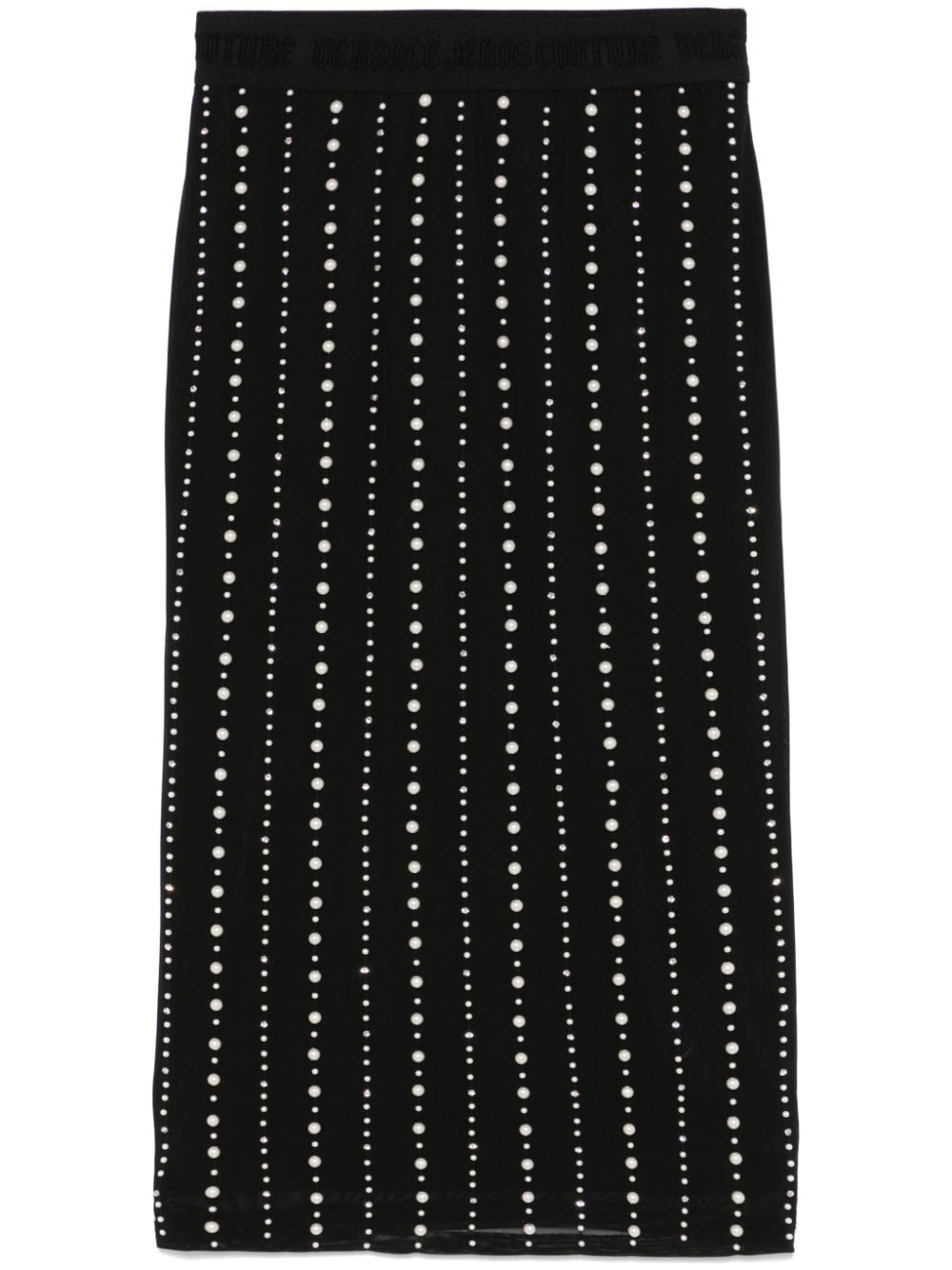pearl-embellished midi skirt Highlights - Black - Stretch-design - Mesh lining - Faux-pearl embellishment - Crystal embellishment - Elasticated logo waistband - Full lining - Straight hem - Mid-length Imported Composition Polyester 100% SIZE & FIT Model measurements Height 5 ft 9 in(1.76 m) Bust/Chest 34.25 in(87 cm) Hips 35.82 in(91 cm) Waist 23.62 in(60 cm) FittingInformation This midi-length skirt is intended to be worn high on the waist The elasticated waist allows for a comfortable fit Made from a midweight stretch fabric, this piece offers elasticity and flexibility when worn Washing instructions Hand Wash