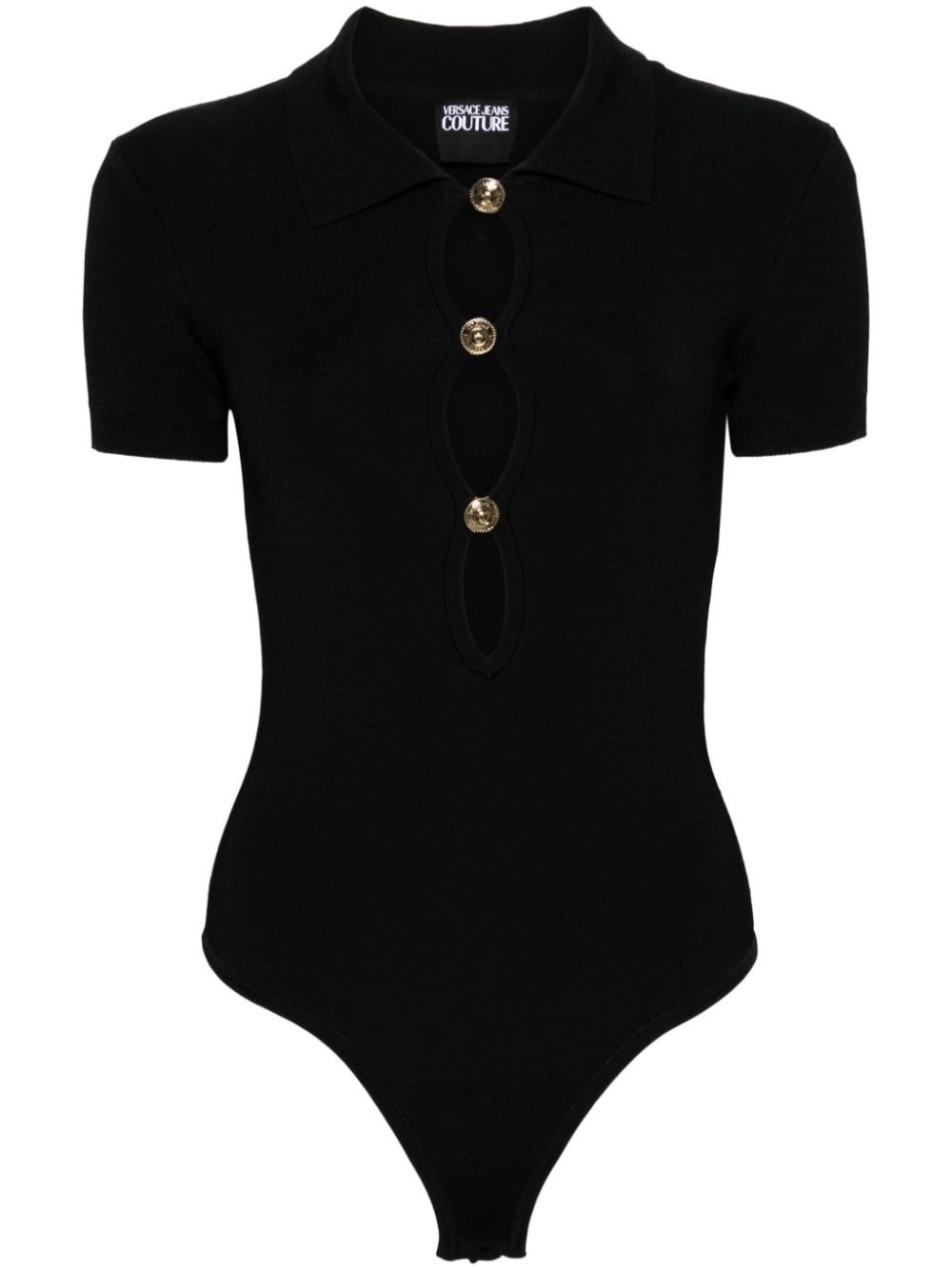 polo-collar knitted bodysuit Highlights - Black - Ribbed knit - Polo collar - Front cut-out detailing - Decorative button detailing - Logo-embossed gold-tone buttons - Short sleeves - Ribbed cuffs - Front single button-fastening to the neck - Just a reminder that this piece must be tried on over your own garments. Imported Composition Viscose 76%, Polyamide 24% SIZE & FIT Model measurements Height 5 ft 11 in(1.8 m) Bust/Chest 31.49 in(80 cm) Hips 36.61 in(93 cm) Waist 24.4 in(62 cm) FittingInformation Designed for a close fit throughout Made with a midweight knit, this piece offers some stretch This piece fits true to size – take your usual size Washing instructions Machine Wash