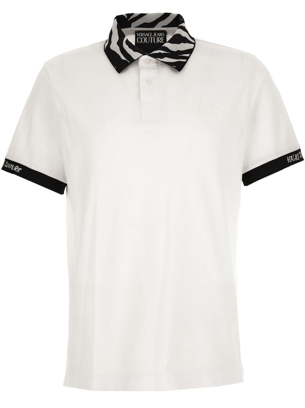 printed-collar polo shirt Highlights - White - Front button placket - Polo collar - Short sleeves - Straight hem Imported Composition Cotton 100%