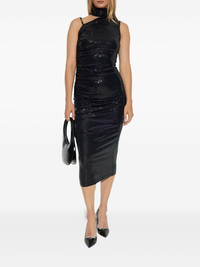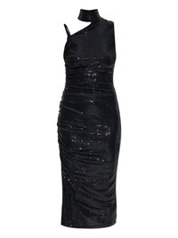 sequinned high-neck dress Highlights - Black - Sequin embellishment - High neck - One-shoulder design - Gathered detailing - Sleeveless Imported Composition Polyamide 73%, Polyester 21%, Spandex/Elastane 6% Washing instructions Read Manufacturer Guidelines