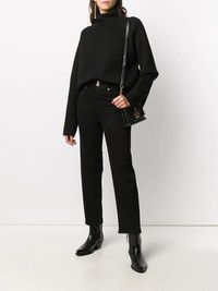 straight leg cropped jeans black cotton embroidered logo to the rear metallic threading mid-rise slip pockets to the sides straight leg Imported Composition Cotton 98%, Spandex/Elastane 2% Washing instructions Machine Wash
