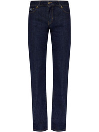 straight-leg jeans Highlights - Indigo blue - Concealed fly and button fastening - Classic five pockets - Belt loops - Logo patch to the rear Imported Composition Cotton 100% Washing instructions Read Manufacturer Guidelines