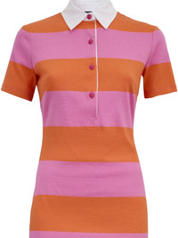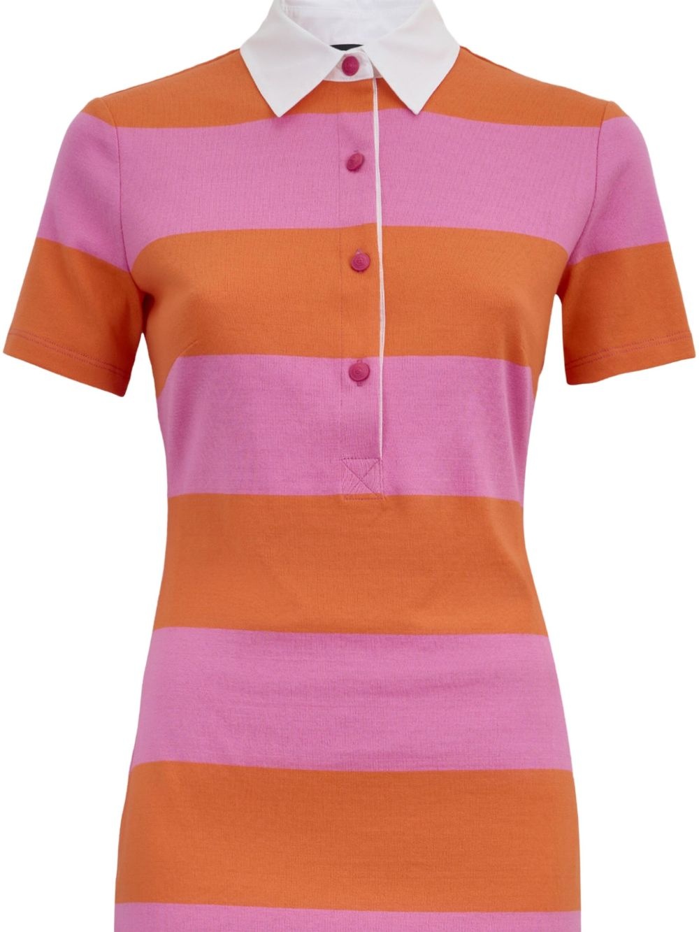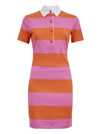 striped polo dress Highlights - Orange and pink - Front button placket - Contrasting collar - Short sleeves - Logo patch at the back Imported Composition Cotton 100%