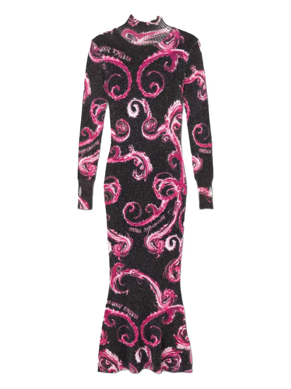 swirl-print high-neck midi dress Highlights - Black - Pink swirl print - Long sleeves - Flared hem Imported Composition Viscose 100% Washing instructions Read Manufacturer Guidelines