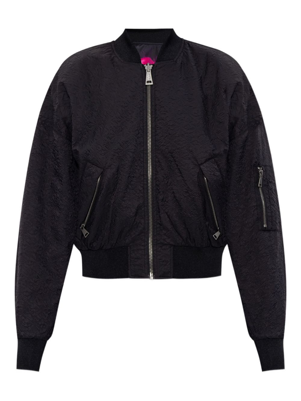 zip-front bomber jacket Highlights - Black - Zip fastening - Ribbed cuffs - Side zip pockets - Logo embroidery Imported Composition Polyamide 100% Washing instructions Read Manufacturer Guidelines