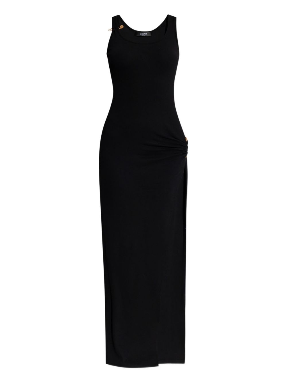 jersey maxi dress Highlights - Black - Tank top style - Gold-tone embellishments - Side slit - Gathered detail Made in Italy Composition Cotton 95%, Elastane 5% Washing instructions Read Manufacturer Guidelines