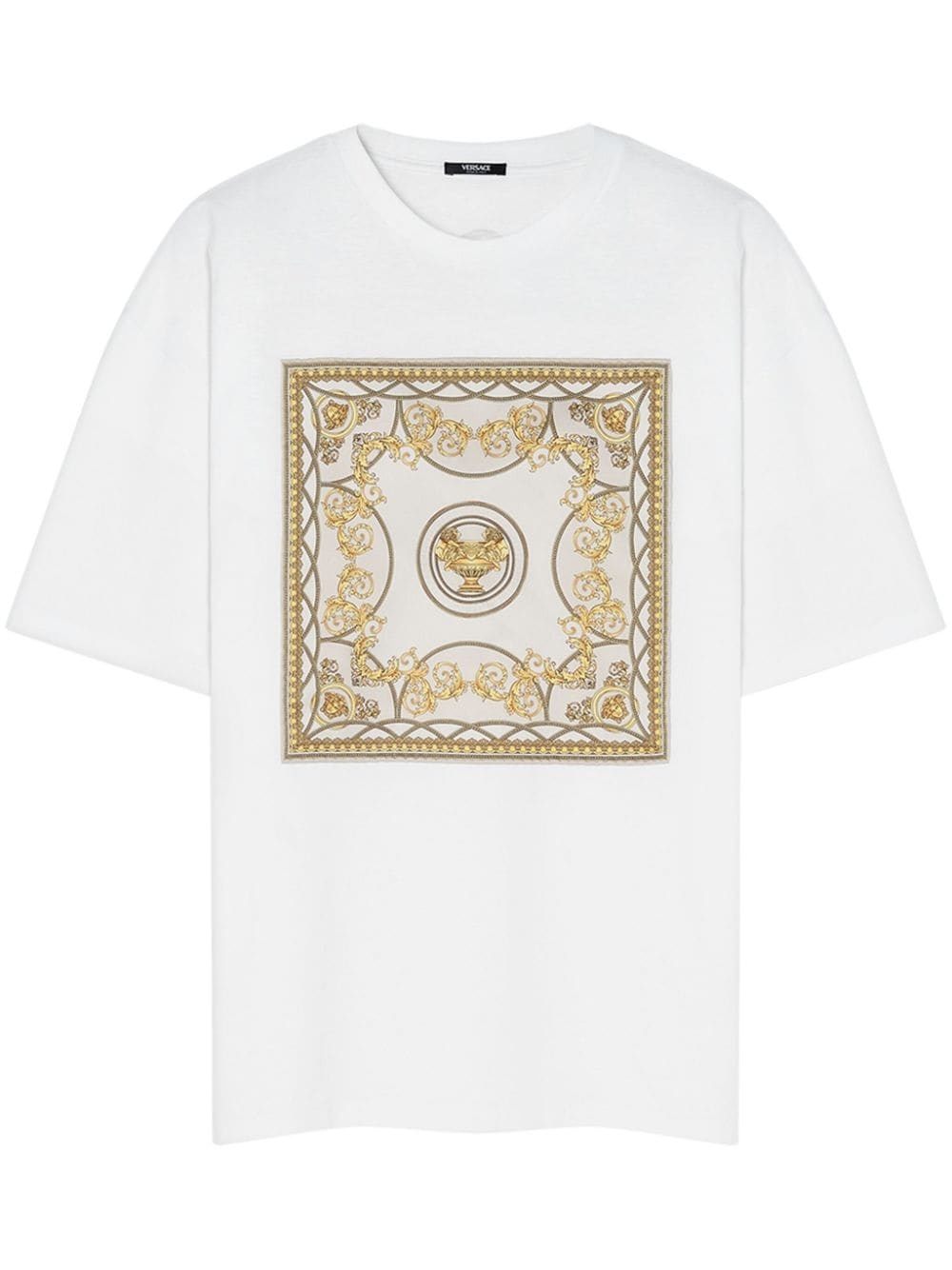La Coupe des Dieux T-shirt Highlights - White/gold-tone - Cotton - Baroque-pattern print - Crew neck - Short sleeves - Straight hem Made in Italy Composition Cotton 100%
