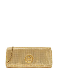 La Medusa clutch bag Highlights - Gold-tone - Chainmail detailing - Medusa plaque - Detachable chain strap - Flap closure with magnetic fastening Made in Italy Composition Outer: Metal 100% Calf Leather 100%