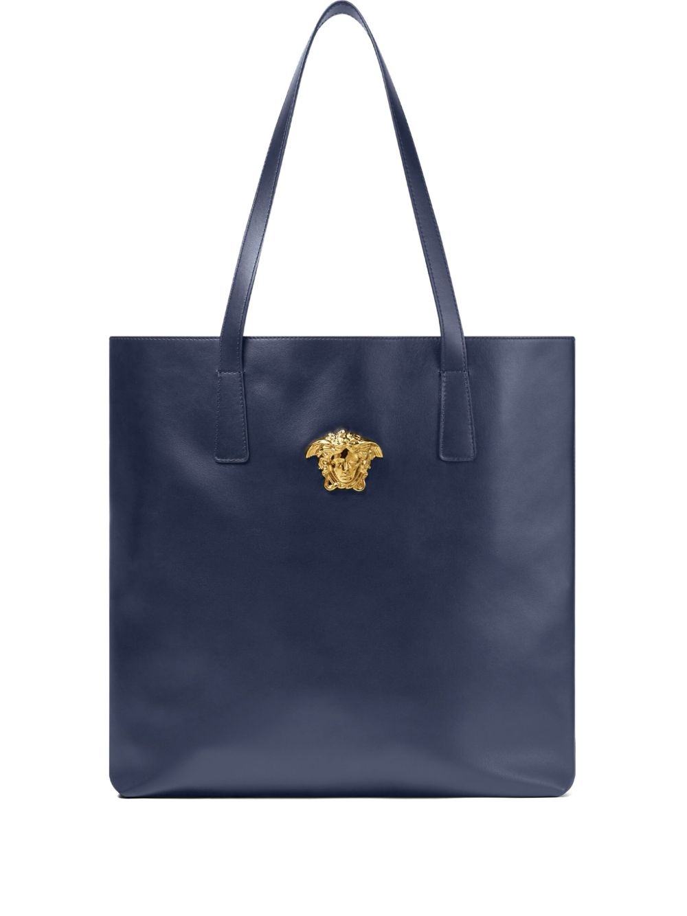 La Medusa tote bag Highlights - Navy blue - Open top - Two long top handles - Main compartment Imported Composition Outer: Calf Leather 100% Lining: Calf Leather 100% SIZE & FIT Measurement DEPTH 2.36 in(6 cm) HEIGHT 13.38 in(34 cm) WIDTH 13.38 in(34 cm)