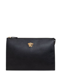 La Medusa zipped clutch bag Highlights - Black - Calf leather - Gold-tone la medusa hardware - Zip fastening - Wrist strap Made in Italy Composition Outer: Calf Leather 100% Lining: Calf Leather 100% SIZE & FIT Measurement DEPTH 2.75 in(7 cm) HEIGHT 7.87 in(20 cm) WIDTH 11.22 in(28.5 cm)