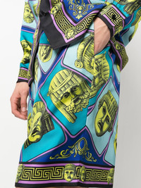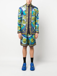 Le Maschere print silk shorts Renowned for their use of theatrical motifs, Versace presents these shorts from SS23 adorned with a new design. Named ‘Le Maschere’ - a classical reference to the opera - it appears all over in pops of yellow and blue. Made in Italy Composition Outer: Silk 100% Lining: Cupro 100% SIZE & FIT Model measurements Height 6 ft 2 in(1.89 m) Bust/Chest 37.4 in(95 cm) Hips 35.03 in(89 cm) Waist 27.95 in(71 cm) FittingInformation This piece fits true to size. We recommend you get your regular size Cut for a loose fit Made with a lightweight non-stretch fabric Washing instructions Dry Clean Only