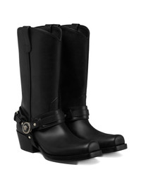 leather cowboy boots Highlights - Black - Pointed toe - Decorative strap - Logo detail - Chunky heel - Pull tab Imported Composition Outer: Calf Leather 100% Lining: Calf Leather 100% Sole: Calf Leather 100%