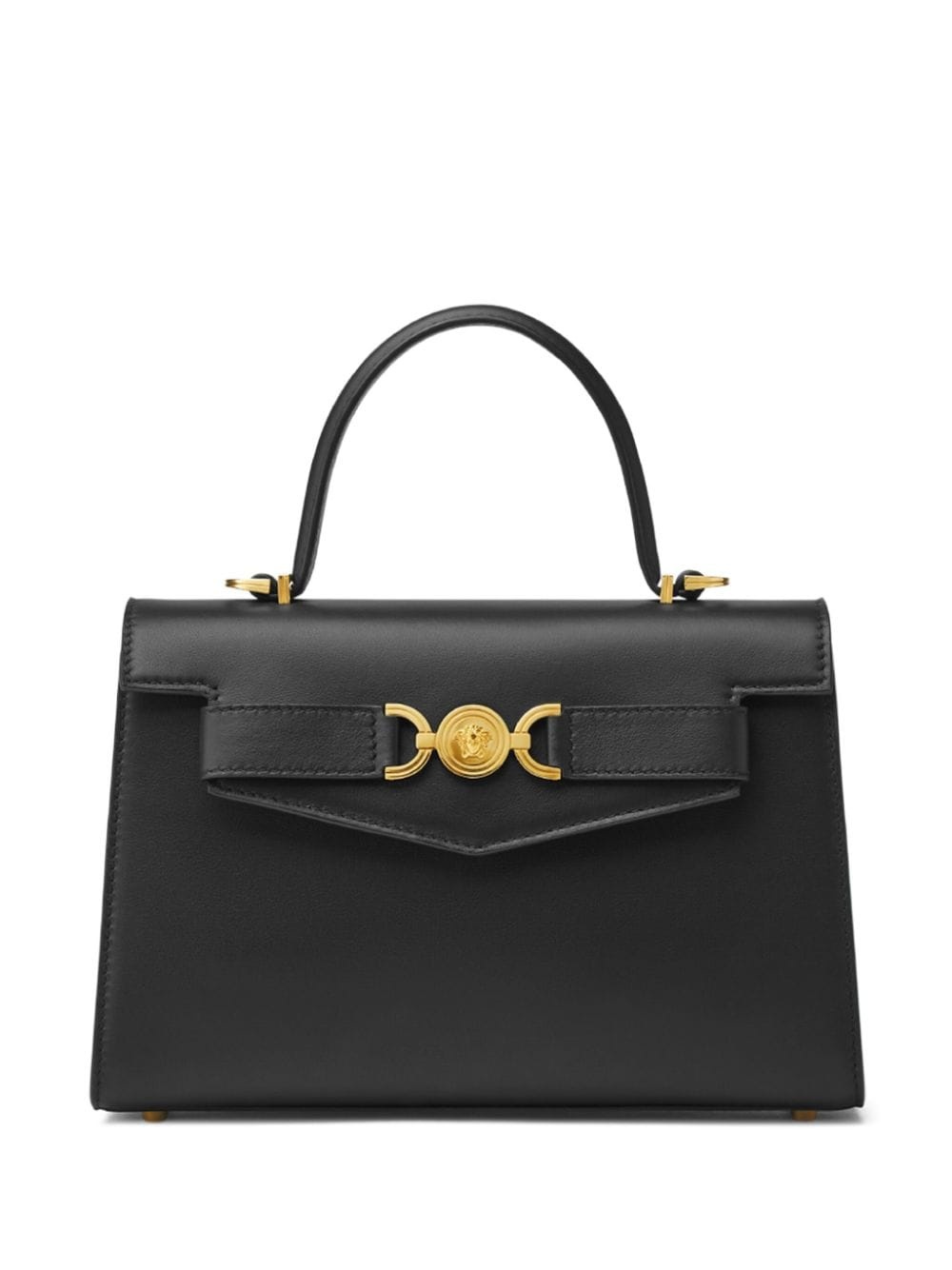 leather tote bag Highlights - Black - Calf leather - Medusa plaque detail - Logo stamp to the rear - Gold-tone hardware - Foldover top with magnetic fastening - Adjustable detachable shoulder strap - Single flat top handle - Main compartment - Internal slip pocket - Internal logo stamp - Metal feet Made in Italy Composition Outer: Calf Leather 100% SIZE & FIT Measurement STRAP 46.45 in(118 cm) DEPTH 3.14 in(8 cm) HANDLE 4.33 in(11 cm) WIDTH 10.23 in(26 cm) HEIGHT 7.08 in(18 cm)