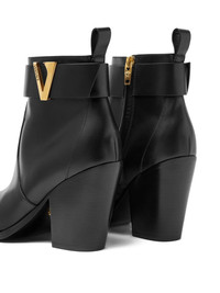 leather V-buckle boots Highlights - Black - Calf leather - V-shaped buckle - Pointed toe - Block heel - Zip fastening Imported Composition Lining: Goat Skin 100% Outer: Lamb Skin 100% Sole: Rubber 100%