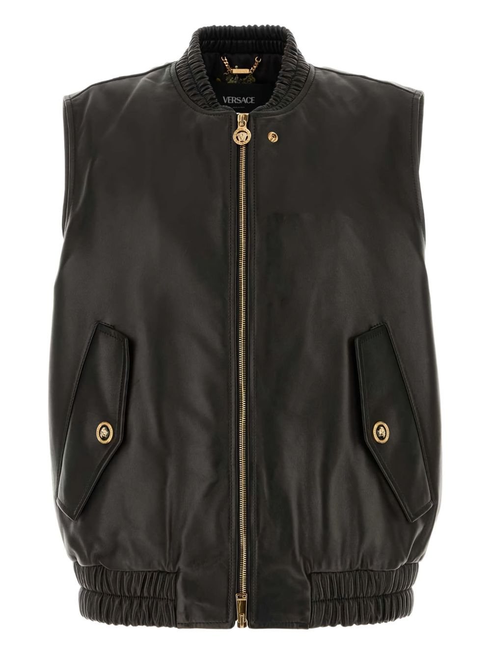 leather zip-fastening gilet Highlights - Black - Lamb leather - Zip fastening - Ribbed hem - Flap pockets - Gold-tone hardware Made in Italy Composition Outer: Lamb Skin 100% Lining: Viscose 100% Washing instructions Read Manufacturer Guidelines