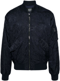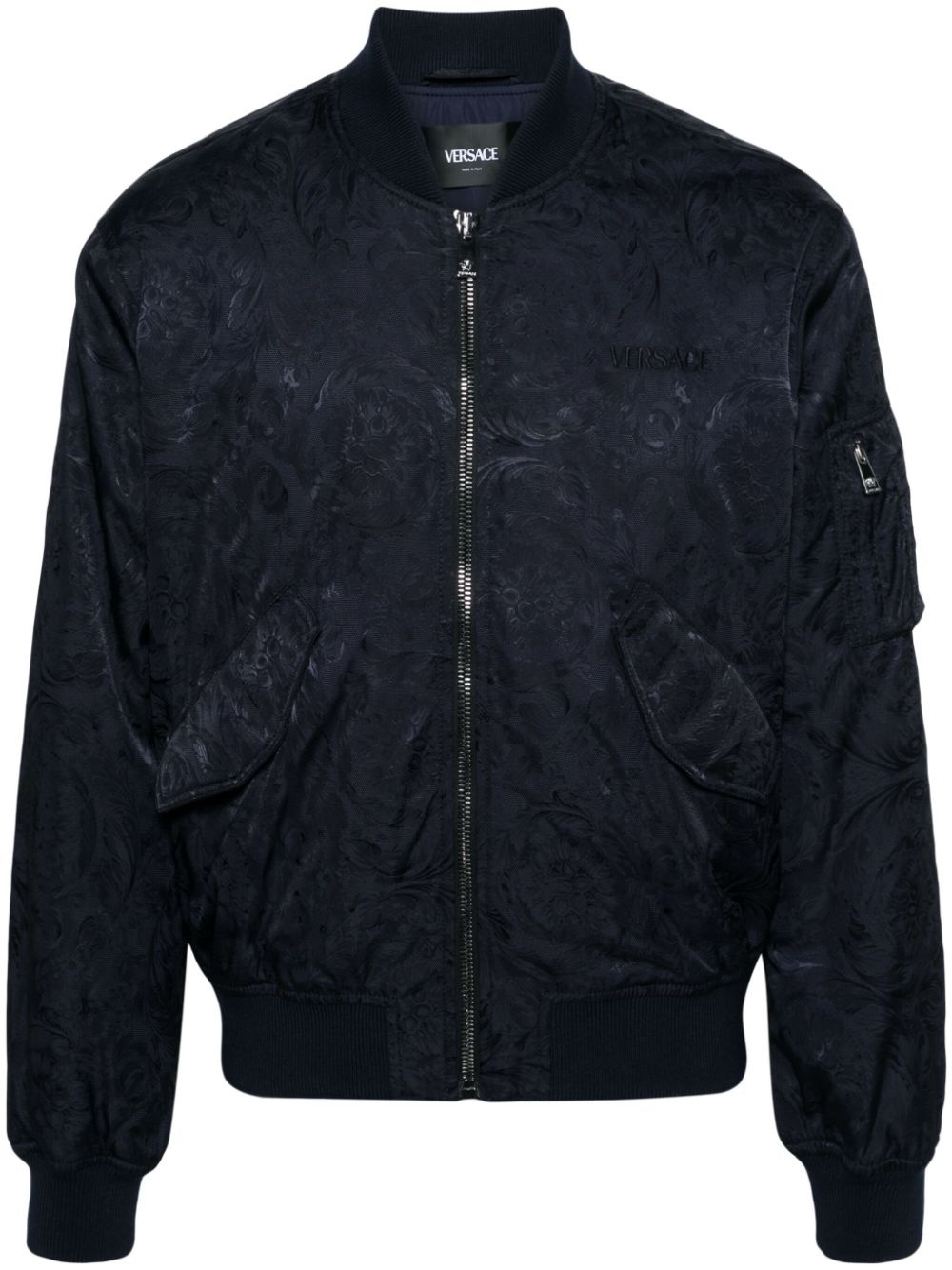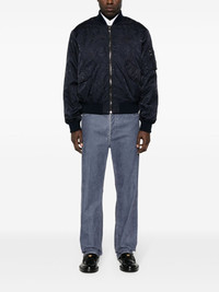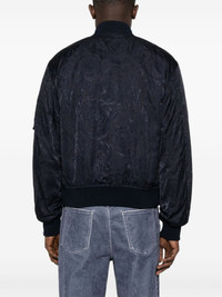 logo-embroidered cotton bomber jacket Highlights - Navy blue - Cotton - Abstract pattern print - Embroidered logo at the chest - Baseball collar - Front zip fastening - Sleeve zip pocket - Two side flap pockets - Long sleeves - Straight hem Made in Italy Composition Outer: Polyamide 100%, Viscose 80%, Polyester 20% Lining: Polyester 100%, Cotton 100% SIZE & FIT Model measurements Height 6 ft 0 in(1.84 m) Bust/Chest 35.82 in(91 cm) Hips 37 in(94 cm) Waist 28.34 in(72 cm) FittingInformation Designed for a boxy fit, intended for a loose fit throughout The ribbed hem offers a close, comfortable fit Made from a midweight non-stretch fabric This piece fits true to size – take your usual size Washing instructions Machine Wash