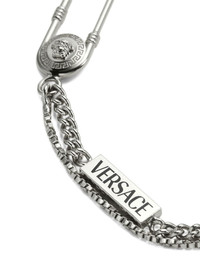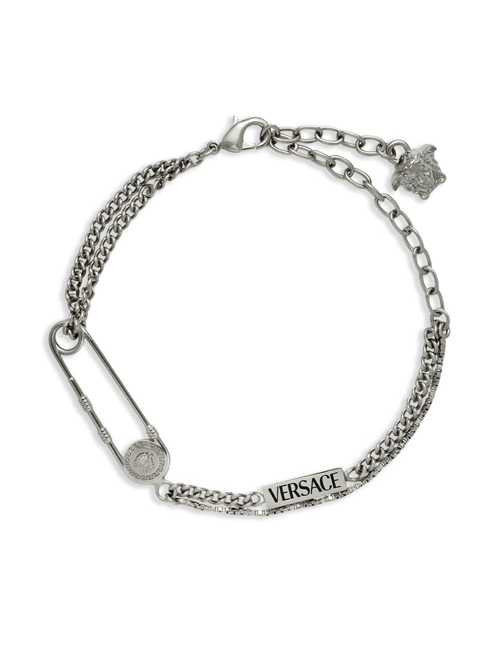 logo-engraved bracelet Highlights - Silver-tone - Lobster claw fastening - Cable-link chain - Safety pin detail - Medusa head motif Imported