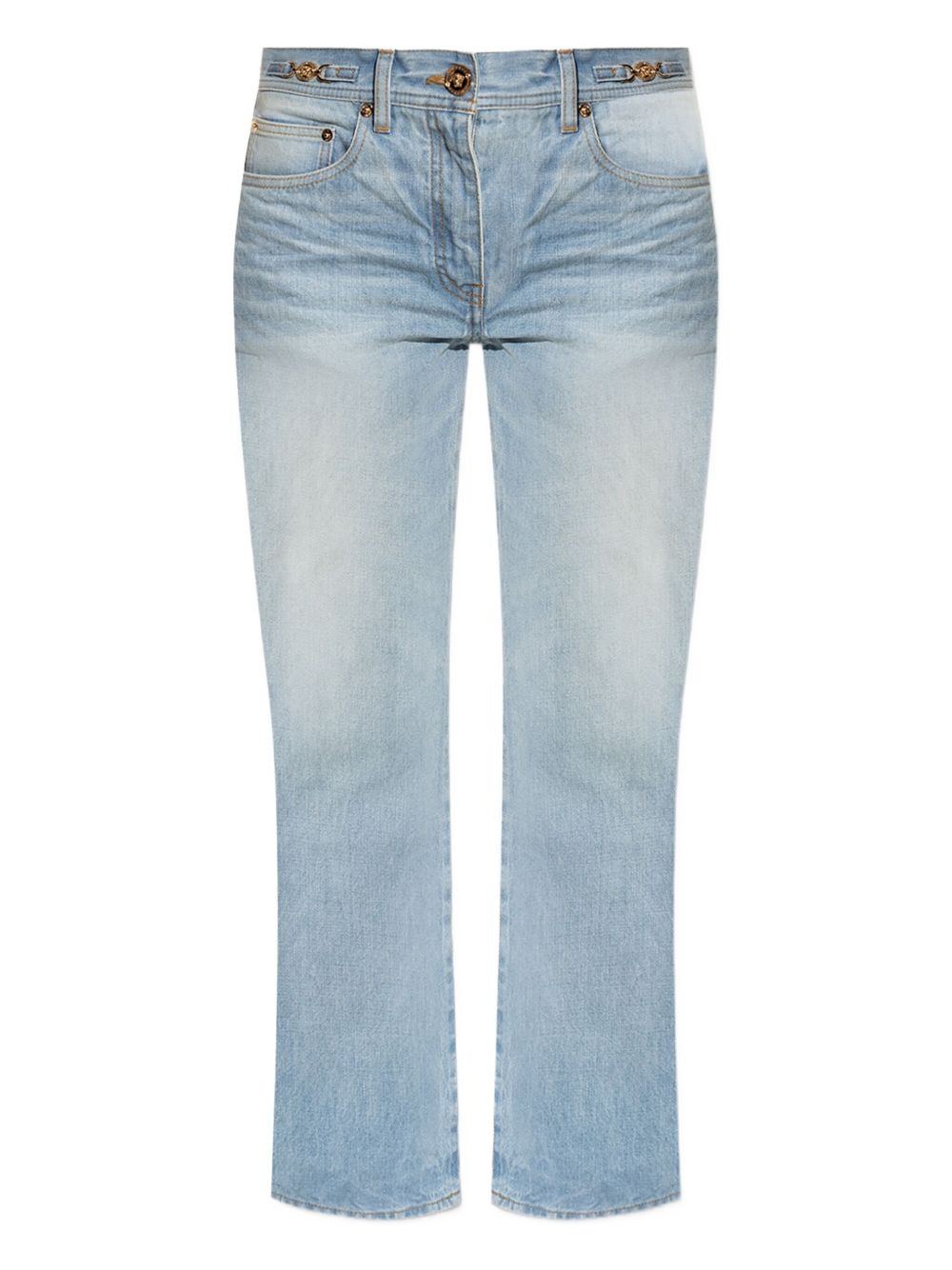 logo-patch jeans Highlights - Light blue - Faded wash - Button and zip fastening - Five-pocket style - Logo detailing Imported Composition Cotton 100% Washing instructions Read Manufacturer Guidelines
