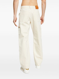 logo-patch utility trousers Highlights - Cream - Two front pockets - Button fastening - Flat front design - Contrasting stitching details - Relaxed shape Made in Italy Composition Cotton 100%, Calf Leather 100%