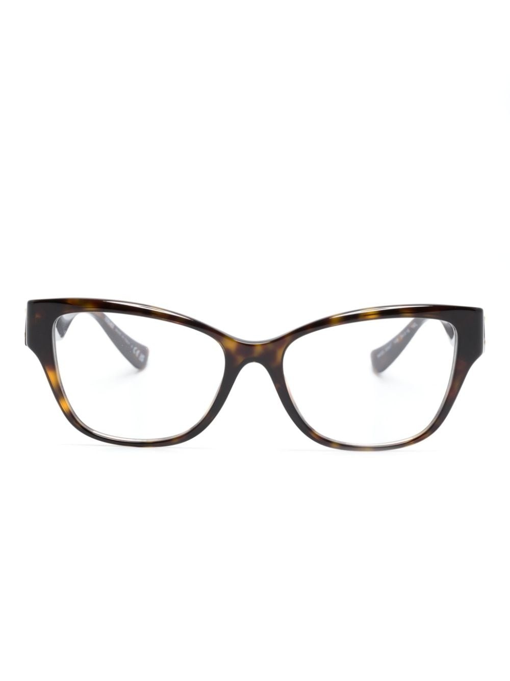 logo-plaque cat eye-frame glasses Highlights - Havana brown - Acetate - Cat-eye frame - Clear lenses - Logo plaque at the arm - Straight arms - Curved tips - All glasses from farfetch are sold as non-prescription frames. - These glasses come with a protective case. Made in Italy Composition Acetate 100% SIZE & FIT Measurement Arm Length 5.51 in(14 cm) Bridge Width 0.62 in(1.6 cm) Lens Diameter 2.12 in(5.4 cm) Total Width 5.51 in(14 cm)