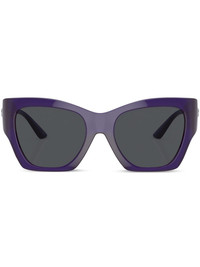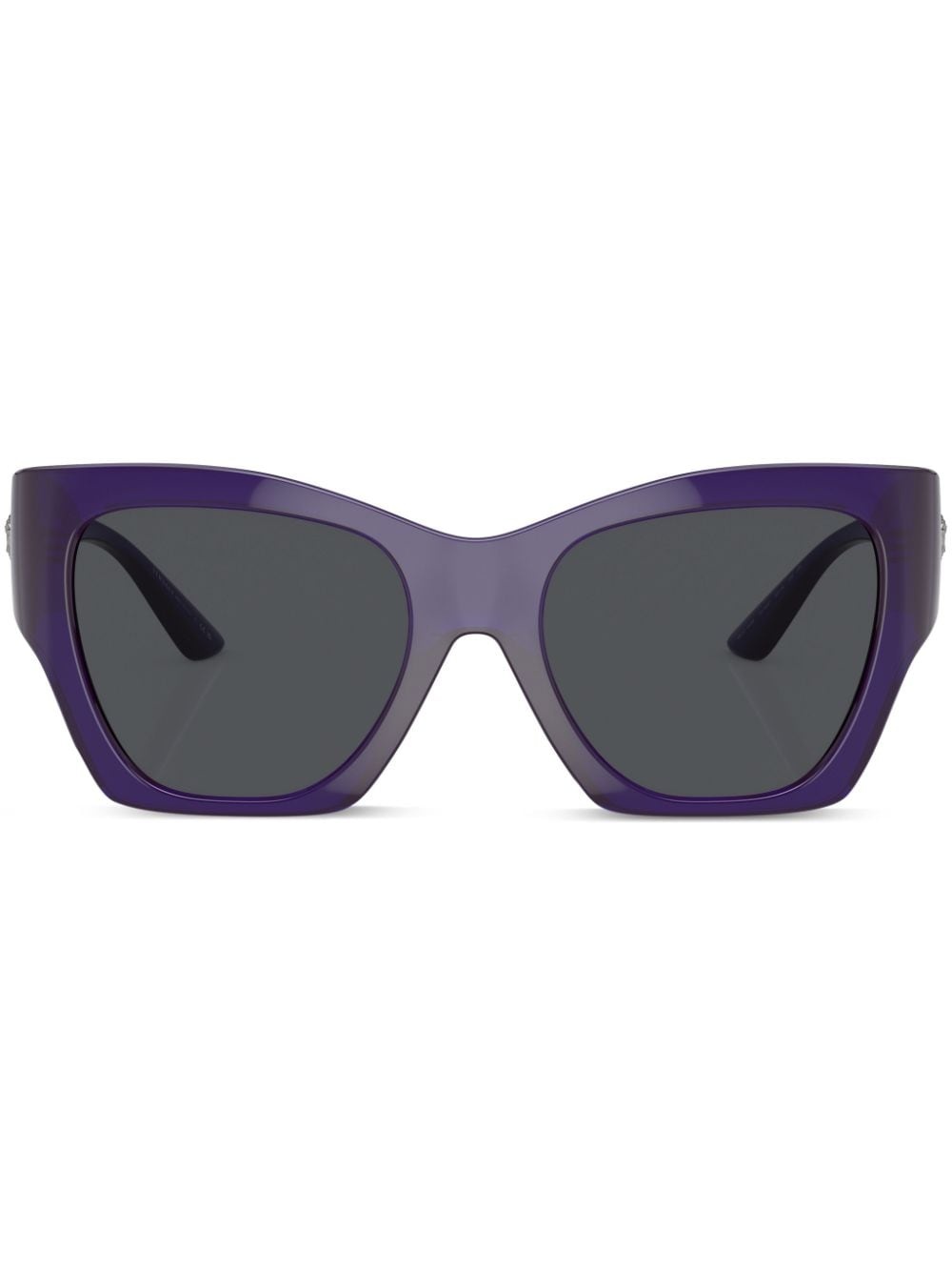 logo-plaque square-frame sunglasses indigo purple acetate transparent design grey tinted lenses square frame Medusa Head motif silver-tone logo plaque straight arms curved tips These glasses come with a protective case. Made in Italy Composition Acetate 100%