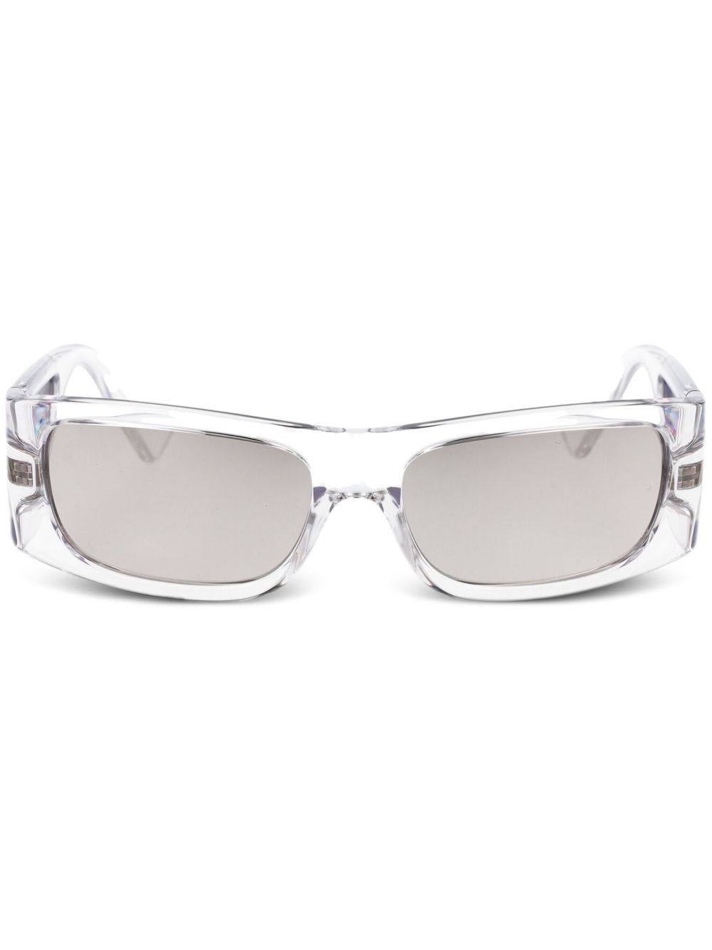 logo-plaque sunglasses Highlights - Transparent design - Acetate - Rectangle frame - Tinted lenses - Logo plaque at the arm - Oversize arms - Curved tips - These glasses come with a protective case. Made in Italy Composition Acetate 100%
