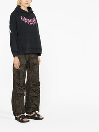 logo-print cotton hoodie Made from cotton jersey, this black hoodie from Versace channels streetwear styles. It's decorated with a flamingo-pink logo at the front and a printed slogan across the back. Imported Composition Cotton 100% SIZE & FIT Model measurements Height 5 ft 10 in(1.79 m) Bust/Chest 31.49 in(80 cm) Hips 35.03 in(89 cm) Waist 23.62 in(60 cm) FittingInformation Designed for an oversized fit, offering additional room throughout Made from a midweight non-stretch fabric, this piece offers minimal elasticity when worn This piece fits true to size – take your usual size Washing instructions Machine Wash