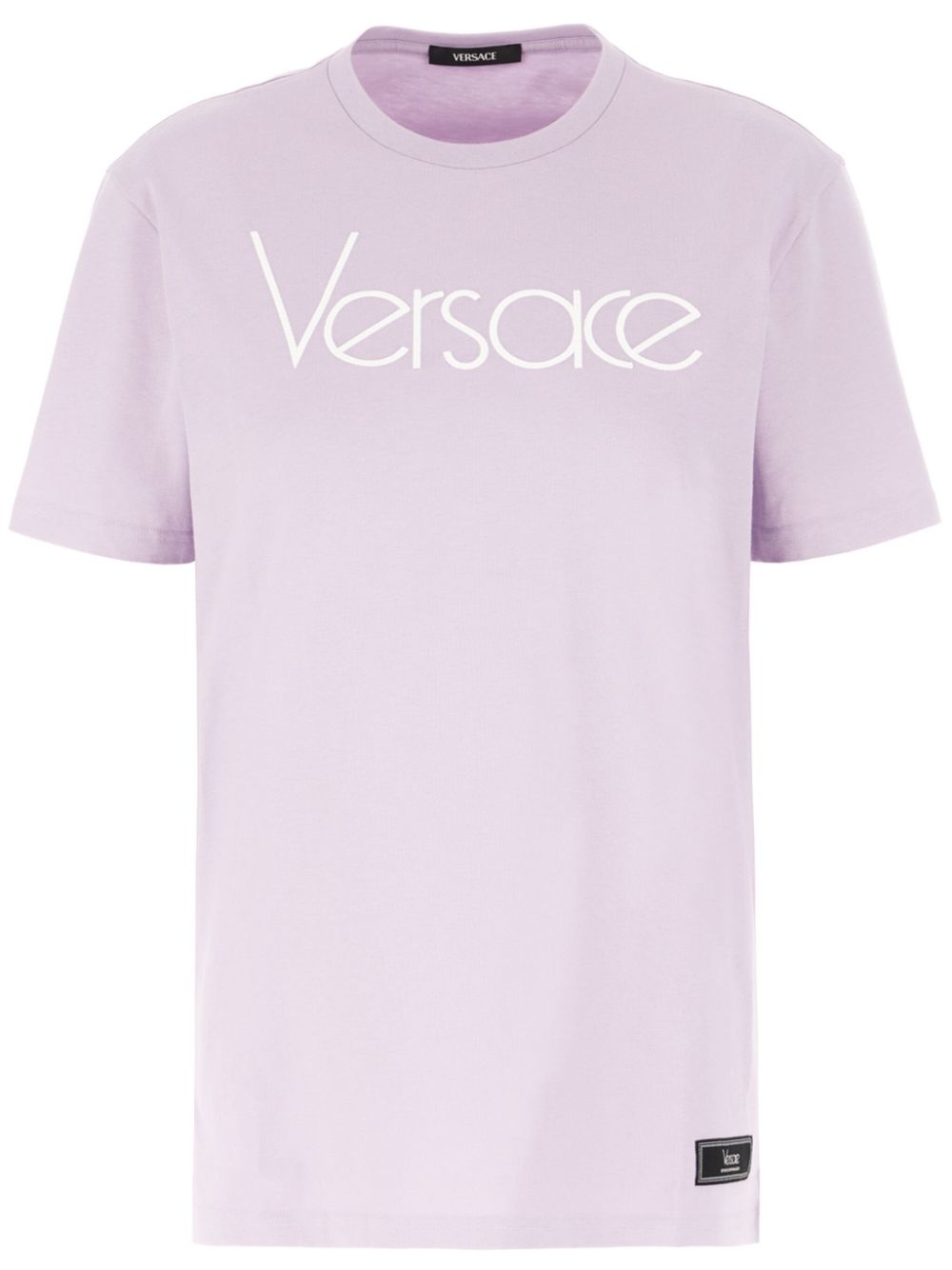logo-print cotton t-shirt Highlights - Lilac - Cotton - Logo print to the front - Crew neck - Short sleeves - Straight hem Made in Italy Composition Cotton 100%
