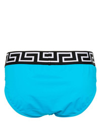 logo-print strap swim trunks Highlights - Aqua blue/black - Stretch-design - Logo-print strap - Medusa head motif - Elasticated waistband - Be mindful to try on swimwear over your own garments. Made in Italy Composition Outer: Polyamide 78%, Elastane 22% Lining: Polyester 88%, Elastane 12% Washing instructions Hand Wash