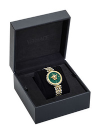 Medusa Heritage 38mm Highlights - 38mm - Forest green - Stainless steel - Round face - Index dial - Medusa plaque detail - Baton hands - Two-tone bracelet - Folding clasp - Quartz movement Imported SIZE & FIT Measurement DIAMETER 1.49 in(3.8 cm)