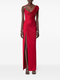 Medusa '95 draped gown Highlights - Cardinal red - Satin finish - Medusa head motif - Side zip fastening - Draped detailing - Front slit - Asymmetric neck - Straight hem - Long length Made in Italy Composition Outer: Viscose 100% Lining: Viscose 100%, Acetate 75%, Silk 25% SIZE & FIT Measurement HIPS 27.55 in(70 cm) LENGTH 59.84 in(152 cm) WAIST 22.04 in(56 cm)