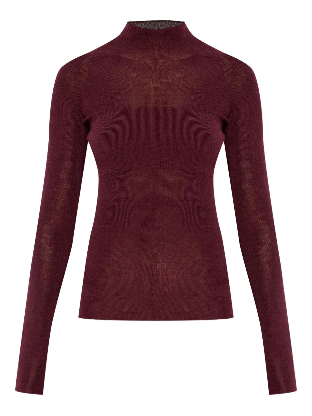Medusa-applique sweater Highlights - Red - Applique detail - High neck - Long sleeves - Ribbed knit Made in Italy Composition Virgin Wool 100% Washing instructions Read Manufacturer Guidelines