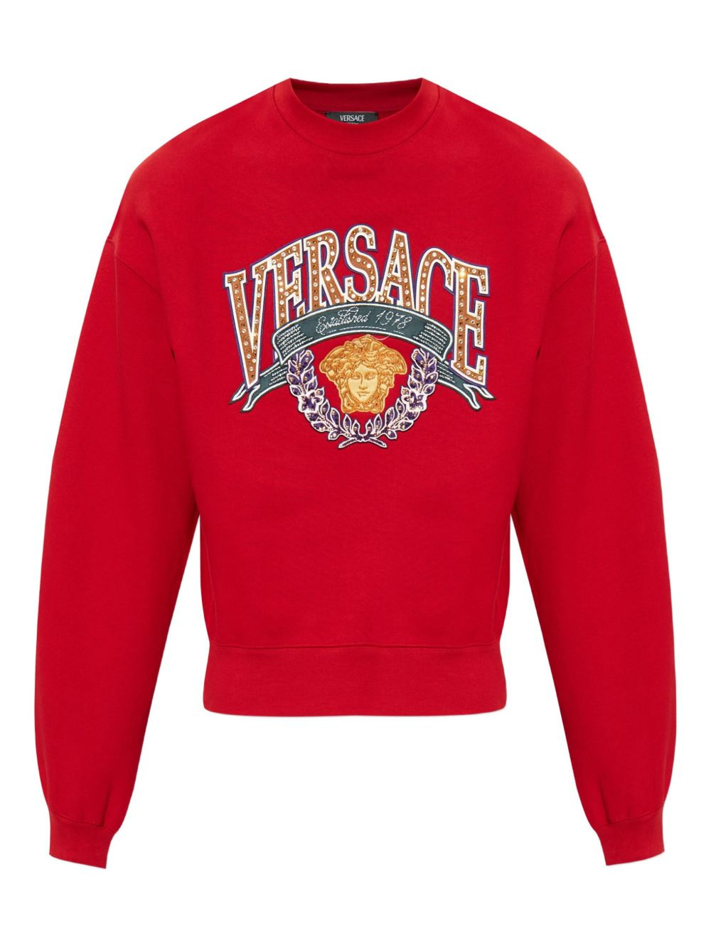 Medusa-applique sweatshirt Highlights - Red - Medusa applique - Round neck - Long sleeves - Ribbed hem - Ribbed cuffs Made in Italy Composition Cotton 100% Washing instructions Read Manufacturer Guidelines