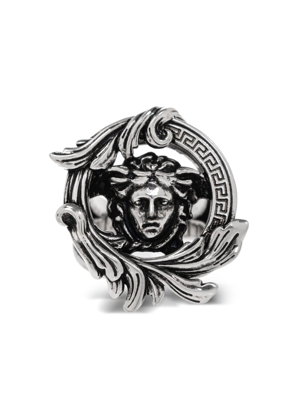 Medusa Barocco ring Highlights - Silver-tone - Intricate medusa design - Circular shape - Ornate detailing - Engraved logo - Polished finish - Statement piece Made in Italy