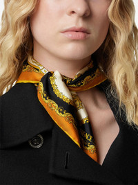 Medusa baroque scarf Highlights - Black and gold-tone - Baroque pattern - Medusa motif - Border detail - Square shape Made in Italy Composition Silk 100% SIZE & FIT Measurement LENGTH 17.71 in(45 cm) WIDTH 17.71 in(45 cm)