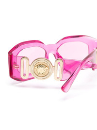 Medusa Biggie transparent-design sunglasses Highlights - Rose pink - Acetate-metal blend - Transparent design - Pink tinted lenses - Rectangle frame - Medusa plaque detail - Gold-tone hardware - Sculpted arms - Curved tips - These glasses come with a protective case. - All glasses from farfetch are sold as non-prescription frames. Made in Italy Composition Acetate 80%, Metal (Other) 20% SIZE & FIT Measurement Bridge Width 0.7 in(1.8 cm) Arm Length 5.7 in(14.5 cm)