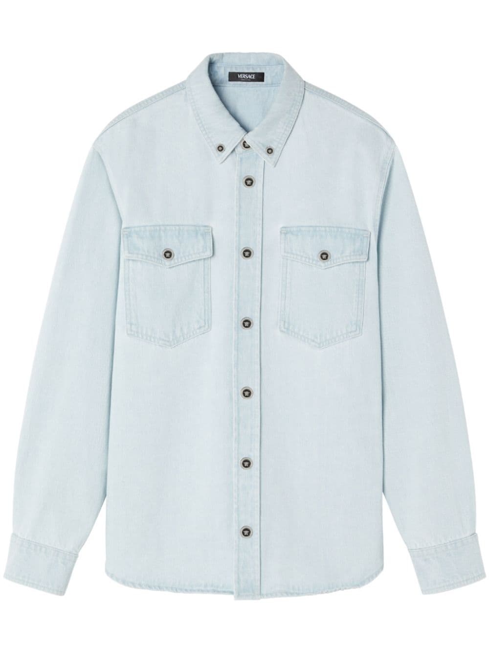 Medusa-buttoned denim shirt Highlights - Light blue - Cotton - Denim - Light wash - Signature medusa head buttons - Button-down collar - Front button placket - Long sleeves - Buttoned cuffs - Two chest flap pockets - Curved hem Made in Italy Composition Cotton 100% Washing instructions Read Manufacturer Guidelines