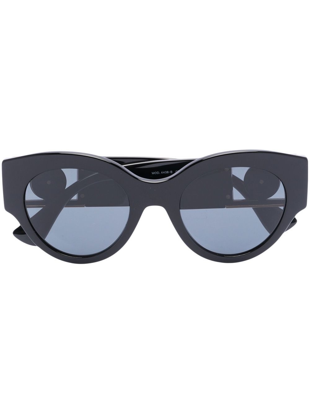 Medusa Cat-eye Sunglasses black acetate cat-eye frame gold-tone hardware embossed logo to the side blue tinted lenses These glasses come with a protective case. Made in Italy Composition Acrylic 100%, Acetate 100% SIZE & FIT Measurement Arm Length 5.7 in(14.5 cm) Bridge Width 0.86 in(2.2 cm) Lens Diameter 2.04 in(5.2 cm) Total Width 5.7 in(14.5 cm)