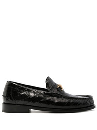 Medusa crocodile-embossed leather loafers Highlights - Black - Calf leather - Patent finish - Embossed crocodile effect - Medusa plaque detail - Round toe - Slip-on style - Branded insole - Low block heel Made in Italy Composition Lining: Calf Leather 100% Outer: Calf Leather 100% Sole: Calf Leather 100% SIZE & FIT Measurement HEEL 0.98 in(2.5 cm)