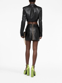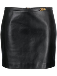 Medusa-embellished leather miniskirt Made in Italy from supple lambskin, this black miniskirt from Versace taps into the house's craftsmanship and attention to detail. The design's mid-rise waist is decorated with a gold-tone Medusa plaque as a nod to the brand's penchant for mythology-inspired motifs. Highlights - Black - Lambskin - Mid-rise - Medusa plaque detail - Rear zip fastening - Thigh-length Made in Italy Composition Lining: Polyester 100% Outer: Lamb Skin 100% SIZE & FIT Model measurements Height 5 ft 10 in(1.77 m) Bust/Chest 32.28 in(82 cm) Hips 35.03 in(89 cm) Waist 25.19 in(64 cm) Measurement HIPS 37.79 in(96 cm) LENGTH 14.56 in(37 cm) WAIST 31.29 in(79.5 cm) FittingInformation This mini-length skirt is intended to be worn just below the waist Soft leather has a supple and smooth construction offering some flexibility This piece fits true to size – take your usual size