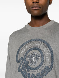 Medusa-embroidered cotton sweatshirt This sweatshirt is embroidered with the iconic Medusa motif and Versace's nautical logo at the front. It's crafted from grey cotton jersey to a regular crew-neck silhouette. Highlights - Medium grey - Cotton - Jersey texture - Medusa head motif - Embroidered logo to the front - Embroidered slogan - Crew neck - Drop shoulder - Long sleeves - French terry lining - Ribbed cuffs and hem Imported Composition Cotton 100% SIZE & FIT Model measurements Height 6 ft 2 in(1.88 m) Bust/Chest 36.61 in(93 cm) Hips 35.82 in(91 cm) Waist 27.95 in(71 cm) FittingInformation Designed for a relaxed fit, this piece allows for comfort and movement when worn Made from a midweight non-stretch fabric, this piece offers minimal elasticity when worn This piece fits true to size – take your usual size Washing instructions Machine Wash