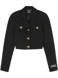 Medusa Head-buttons cropped jacket Highlights - Black - Virgin wool blend - Signature medusa head buttons - Gold-tone hardware - Logo patch at the sleeve - Notched collar - Front button fastening - Long sleeves - Two button-fastening chest pockets - Straight hem - Cropped Made in Italy Composition Outer: Virgin Wool 97%, Nylon 2%, Spandex/Elastane 1% Lining: Cupro 58%, Viscose 42%