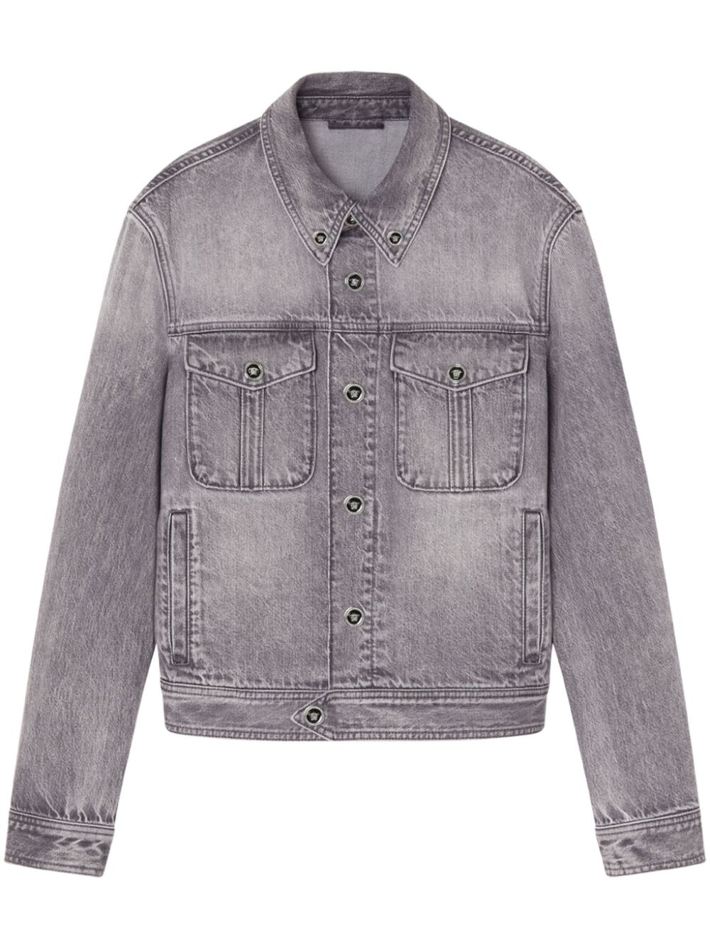 Medusa Head-buttons denim jacket Highlights - Light grey - Cotton - Denim - Signature medusa head buttons - Classic collar - Long sleeves - Buttoned cuffs - Front button fastening - Two chest flap pockets - Two side welt pockets Made in Italy Composition Cotton 100%