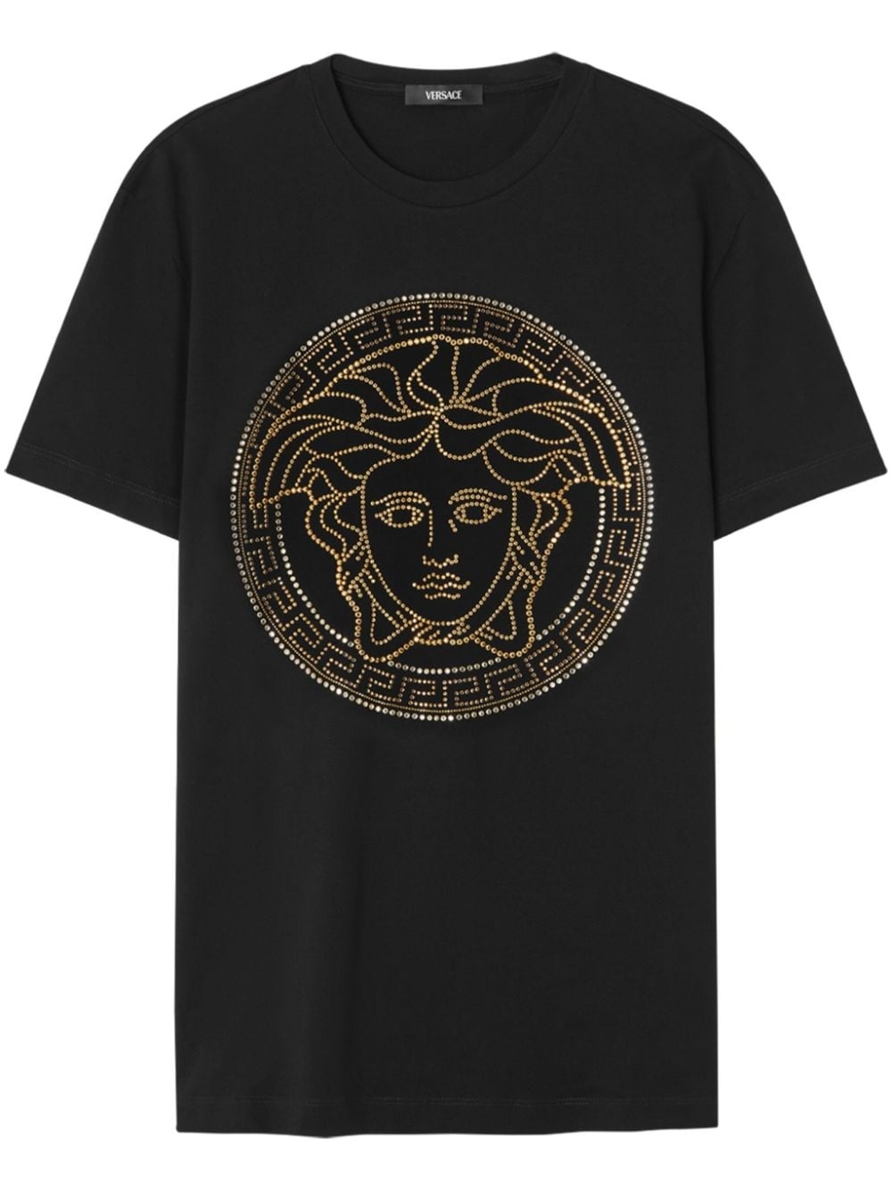 Medusa Head cotton T-shirt Highlights - Black/gold-tone - Cotton - Jersey texture - Medusa head motif - Crystal embellishment - Crew neck - Short sleeves - Straight hem Imported Composition Cotton 100% Washing instructions Read Manufacturer Guidelines