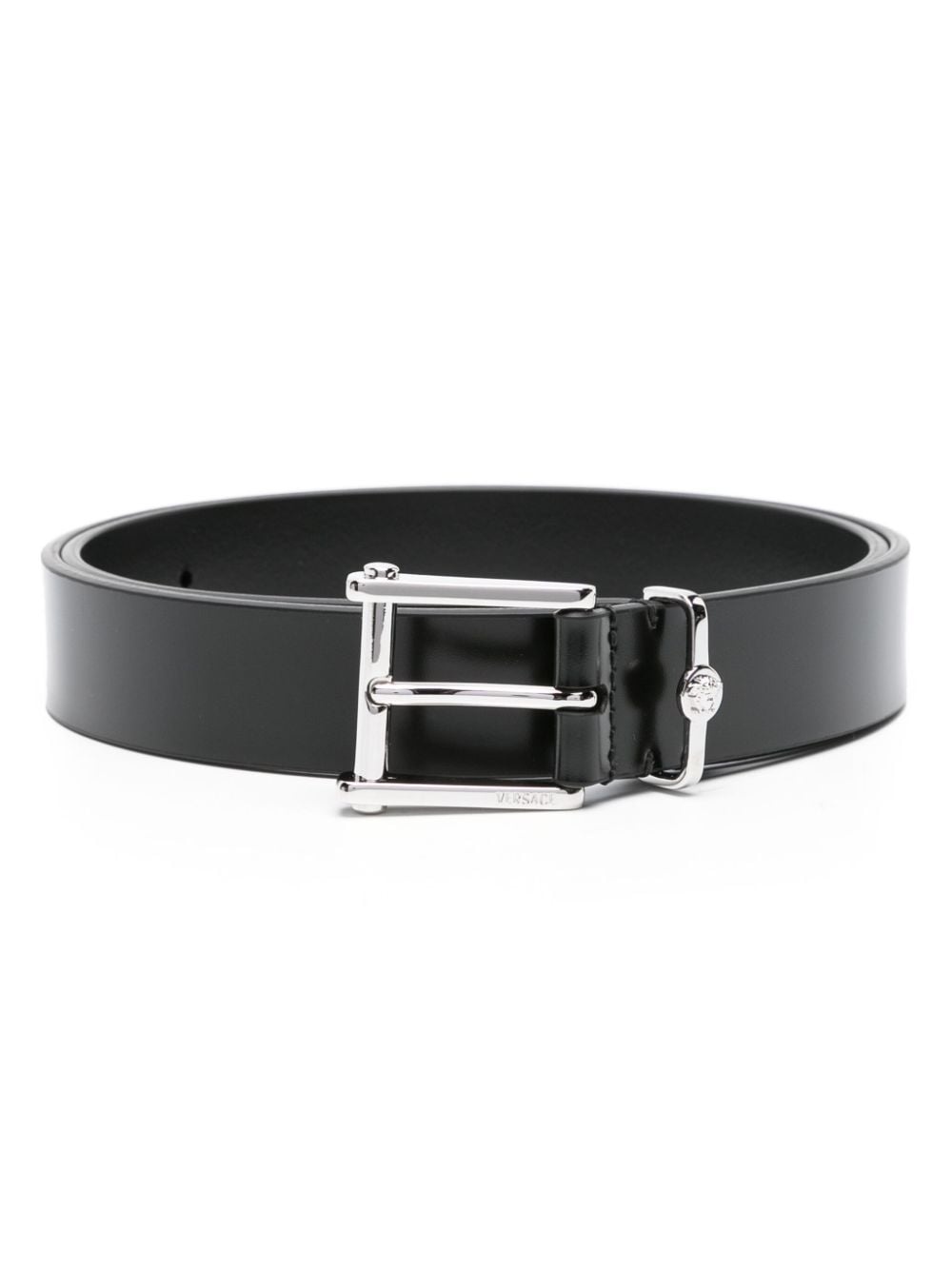 Medusa Head leather belt Versace crafts the belt with black leather and infuses it with two signature motifs. While the Column buckle names the accessory, it's the Medusa hardware that truly showcases the brand's roots and penchant for mythological creatures. Highlights - Black - Calf-length - Smooth grain - Logo-engraved silver-tone hardware - Medusa plaque detail - Ardillon-buckle fastening - Punched holes - Adjustable fit Made in Italy Composition Outer: Calf Leather 100% SIZE & FIT Measurement Minimum Length 33.46 in(85 cm) TOTAL LENGTH 37.4 in(95 cm) WIDTH 1.18 in(3 cm)