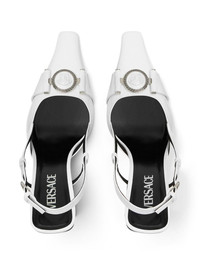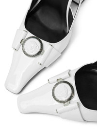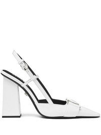 Medusa Head leather pumps Highlights - White - Calf leather - High block heel - Buckle-fastening slingback strap - Branded footbed - Medusa plaque detail - Pointed toe - Rubber toecap Made in Italy Composition Leather 100% SIZE & FIT Measurement HEEL 4.33 in(11 cm) Sole height 0.39 in(1 cm)