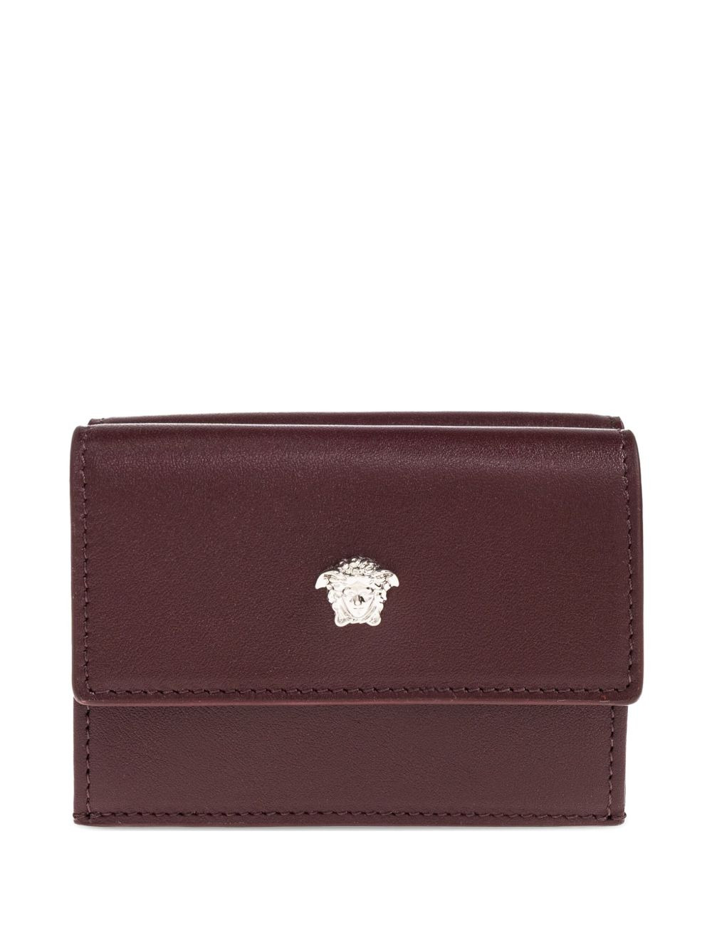 medusa-head leather wallet Highlights - Dark red - Calf leather - Medusa head emblem - Multiple card slots - Trifold design - Press stud fastening Made in Italy Composition Outer: Calf Leather 100% SIZE & FIT Measurement LENGTH 4.13 in(10.5 cm) WIDTH 3.14 in(8 cm)