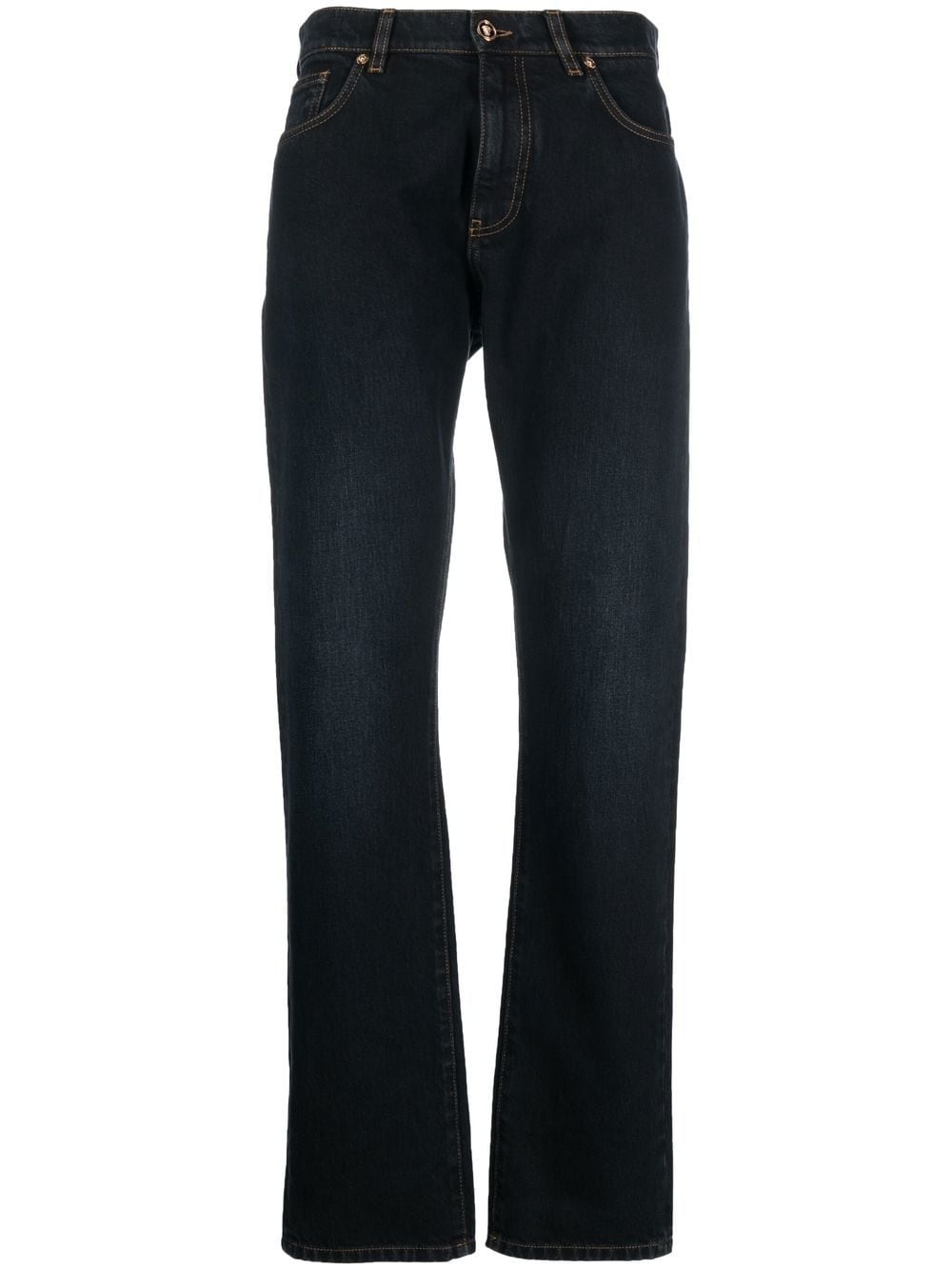 Medusa Head-motif jeans indigo blue cotton Medusa Head motif belt loops signature Medusa Head buttons classic five pockets straight leg Made in Italy Composition Lining: Cotton 100% Outer: Cotton 100% SIZE & FIT Model measurements Height 6 ft 1 in(1.86 m) Bust/Chest 37.4 in(95 cm) Hips 34.64 in(88 cm) Waist 29.13 in(74 cm) FittingInformation This piece fits true to size. We recommend you get your regular size Regular fit Made with a mid-weight non-stretch fabric