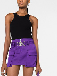 Medusa Head-motif miniskirt Versace's miniskirt spotlights the brand's iconic Medusa Head motif. The emblem debuted on the doors of the first-ever Milan headquarters. Made in Italy Composition Lining: Acetate 75%, Silk 25% Outer: Viscose 100% SIZE & FIT Model measurements Height 5 ft 10 in(1.77 m) Bust/Chest 32.28 in(82 cm) Hips 34.25 in(87 cm) Waist 24.01 in(61 cm) FittingInformation This piece fits true to size. We recommend you get your regular size Designed to be fitted at the waist and hips, loose over the leg Made with a mid-weight non-stretch fabric Washing instructions Dry Clean Only